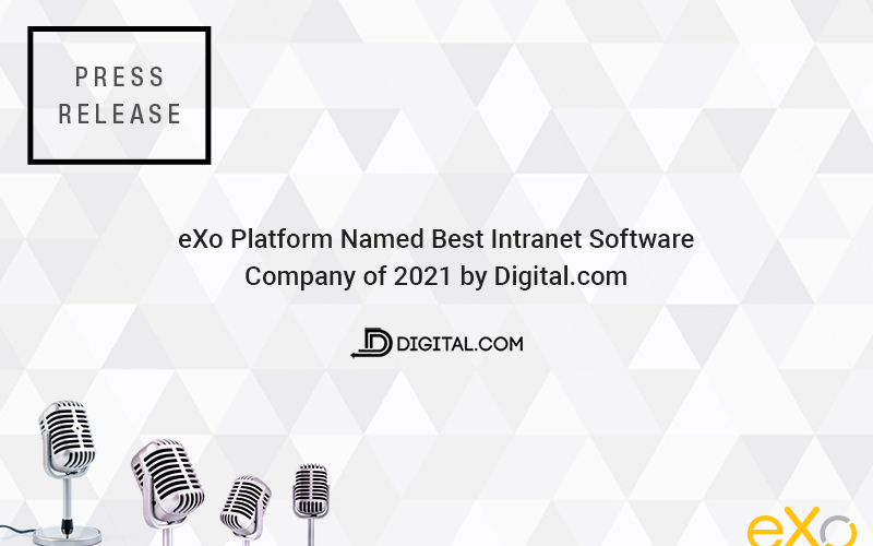 San Francisco, January 27, 2021, – Digital.com, a leading independent review website for small business online tools, products, and services, has named eXo Platform among the best software companies of 2021 for three categories: Intranet, Content Management and portal. The top-ranking solutions were evaluated based on multiple criteria and customer feedback.